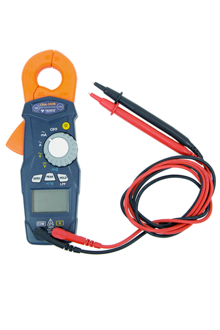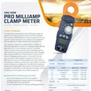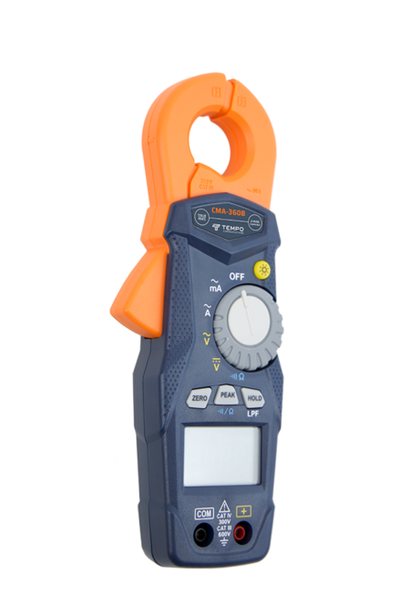 True RMS can measure alternating current (ac) or ac voltage. The CMA-360B milliamp meter gives the user the ability to obtain accurate results in “dirty” power conditions, like measuring the current draw of a pump motor. The combination of the True RMS with resistance measurement up to 600k Ohms, and the current measurement resolution to 1/1000th of a milliamp (one microamp), provides the ability to find troubles other meters may miss.