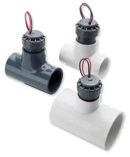 The Flow-Sync Sensor is a simple and economical solution for metering and reacting to actual flow conditions. A proven water saver, it monitors system flow rates and totals, and provides automatic reaction to high or low flow conditions during irrigation. The Flow-Sync is designed for use on pipe sizes up to 10 cm. When installed in conjunction with a master valve, it can be a key source in preventing water waste resulting from line breakage.