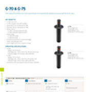 Easy to adjust and maintain, Hunter's G-70 golf and large turf rotor is also the ideal choice for the customer on a budget. The B Series rotors provide all the standard features you want for mid-distance coverage including a time-tested gear drive, convenient through-the-top servicing, and a sturdy, impact-resistant flanged body. Plus Hunter's PressurePort™ nozzling system reduces velocity and pressure to the secondary nozzles while increasing droplet size. The result is they deliver uniform distribution every time.
