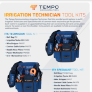 The Tempo Communications Irrigation Technician Tool Kits provide two kit options to outfit Irrigation Technicians and Specialists with all the common irrigation tools and testers required to get the job done. You’ll be prepared to locate and repair common faults in any irrigation system with this tool kit. Each tool kit is supplied in a ruggedized belt bag that can conveniently be hand carried, worn around the waist, or over the shoulder. Extra pockets are available to hold accessories and additional tools.