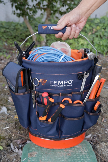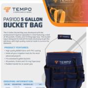 The PA9100 5-Gallon Bucket Bag was developed with the professional Irrigation specialist in mind featuring a total of 30 pockets, 9 slots, and 1 D-Ring tape loop. This bucket bag is designed to hold all the tools necessary to get the job done, with high-quality material made to survive the elements.