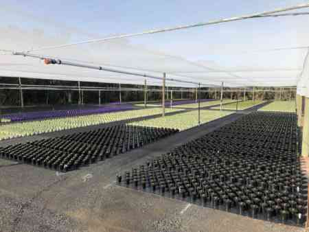 Andrew from Think Water explains the situation we found. “The shade house is covered with hail net and open on both sides on a site affected by wind. Greg wanted to irrigate his tubestock without losing water to wind, he wanted a more efficient system with more uniform coverage, and he wanted it to be out the way.”